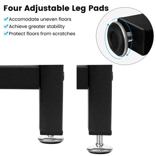 The home office computer table desk with storage can be used as a gaming desk and comes with thick metal frames and extra metal brackets, making it strong enough to support heavy loads. The desk frame is made of heavy-duty powder-coated steel and adjustable leg pads, which ensure stability and durability.