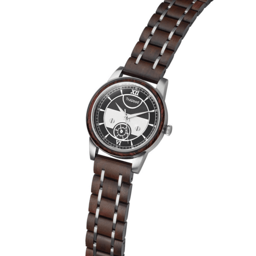 The TruWood Cartier watch is a paradigm shift. Inspired by the human drive to explore in mind, this collection serves as a reminder to discover and achieve the unattainable. Each Cartier timepiece is crafted with hand-picked black sandalwood, salvaged from reclaimed boats that have traversed the oceans. The polished wooden link band is held together by silver stainless steel lugs and a clasp, topped with a black dial reminiscent of history's greatest explorers. This watch rests lightly on your wrist, sporting a subtle sub-dial so you can look your best when delving into uncharted territory.