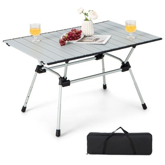 Folding Aluminum Camping Table with Carrying Bag-Silver