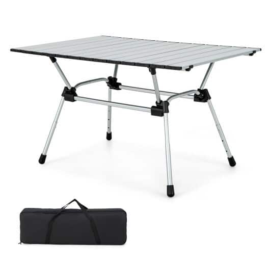 -The aluminum tabletop is anti-skidding lightweight durable and sturdy enough.