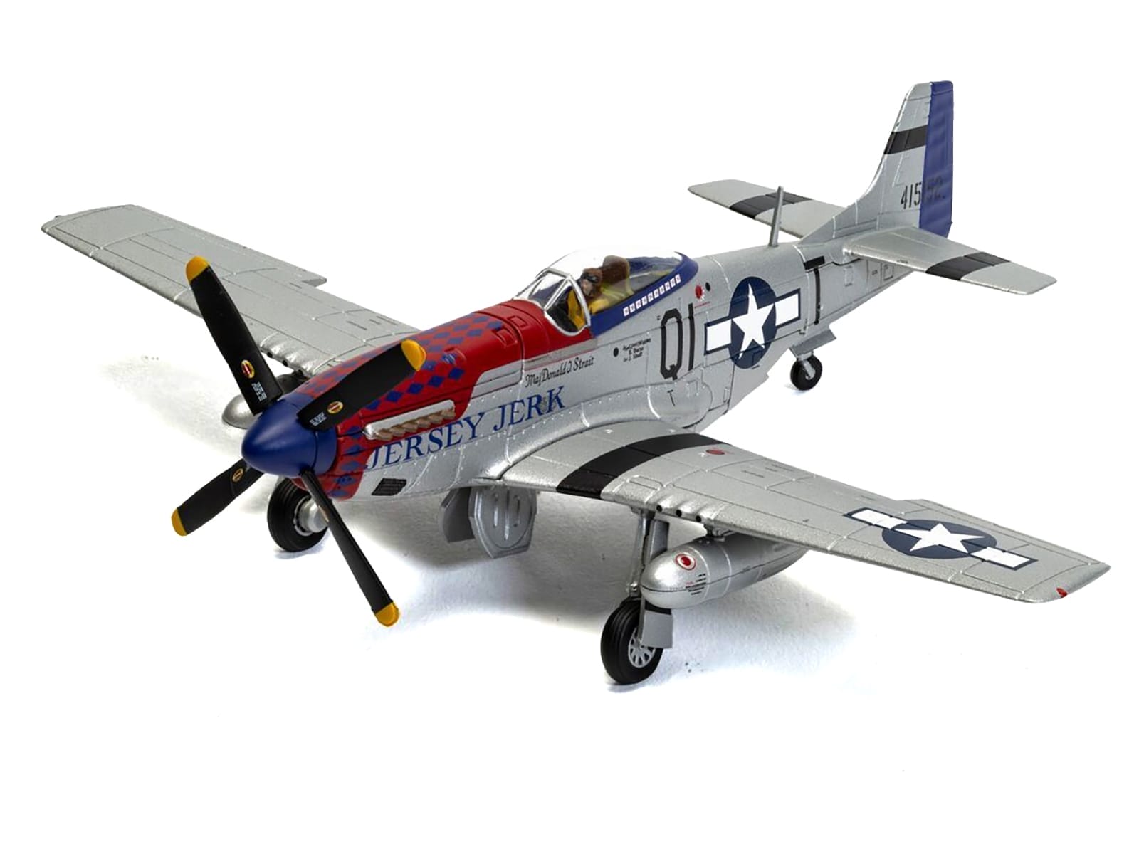 This 1:72 scale model of Jersey Jerk meticulously recreates the aircraft flown by Major Donald Strait, with authentic squadron markings, weathered detail, and historical accuracy. A true standout in any WWII collection, it honors a legendary pilot and the Mustang's enduring legacy in the air war over Europe.