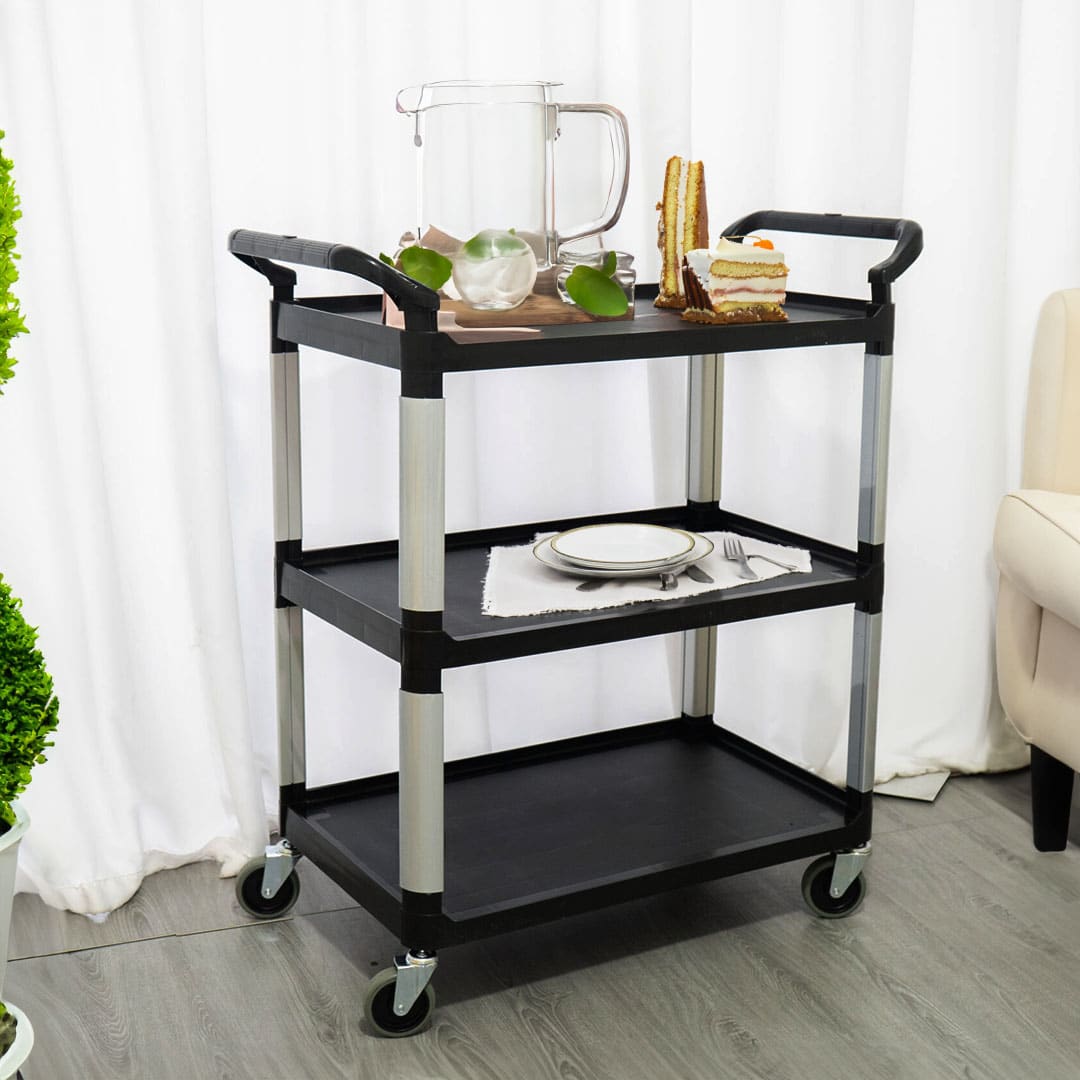 SOGA 2X 3 Tier Food Trolley Portable Kitchen Cart Multifunctional Big Utility Service with wheels 830x420x950mm Black