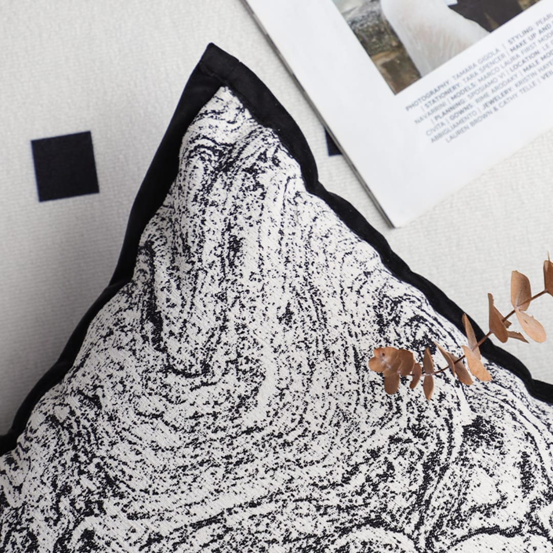 Add modern artistic flair with this bundle of 2 pillow covers (no inserts). Featuring a sleek black trim and abstract marble design, they bring a chic, gallery-inspired touch to your sofa, bed, or office chair.