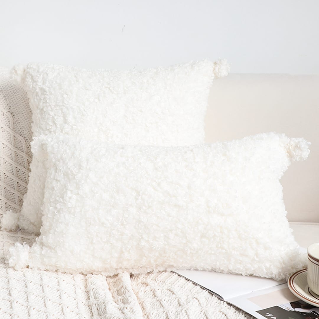 โ SOGA 2X 30x50cm Ivory Sherpa Lumbar Pillow with Tassel Details