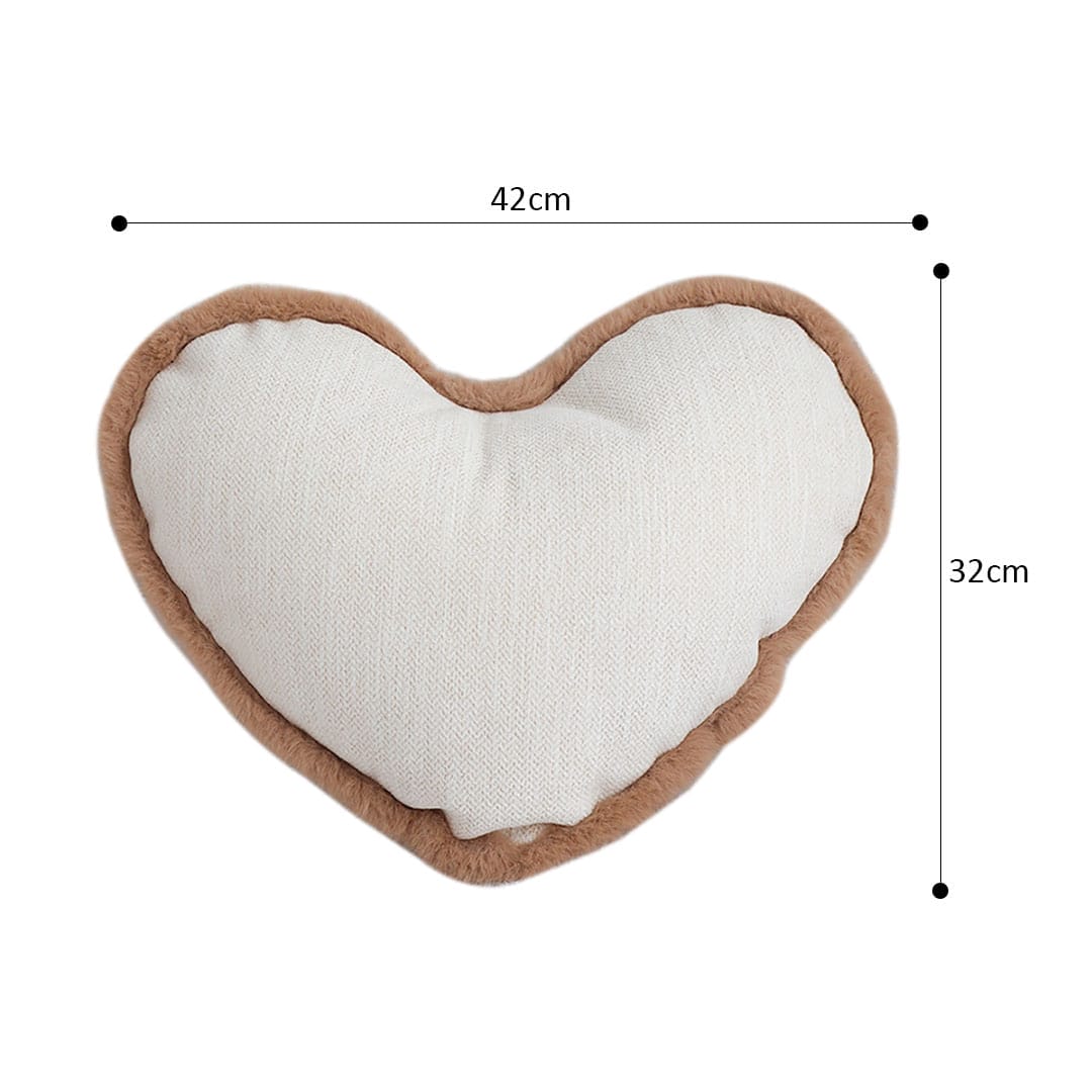 โ SOGA 2X 42x32cm Heart-Shaped Beige Brown Off-White Plush Polyester Pillow Cover