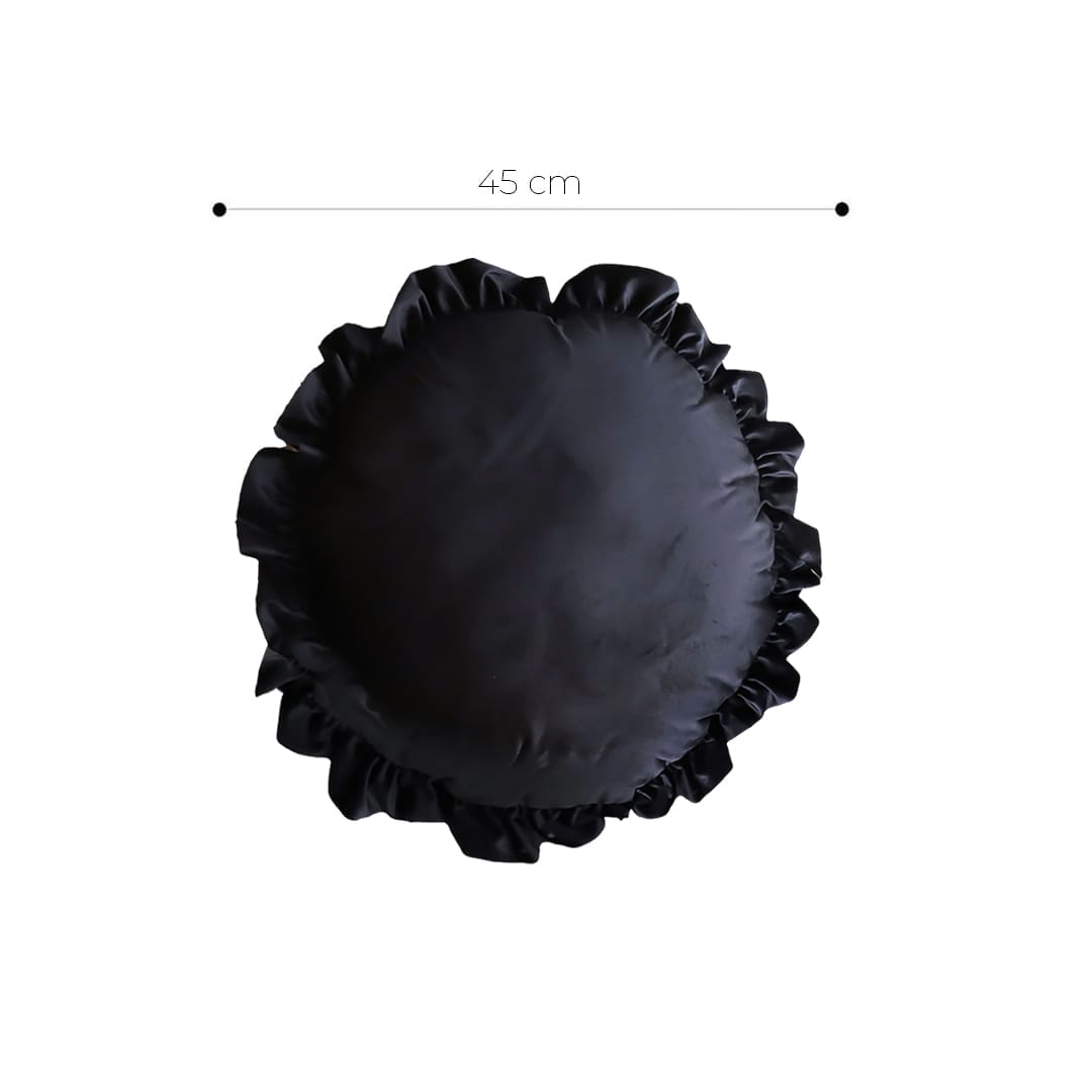 Add a vintage touch with this round black pillowcase, featuring delicate butterfly details and lotus leaf edge ruffles. Perfect for creating a cozy yet elegant accent on your sofa, chair, or bed.