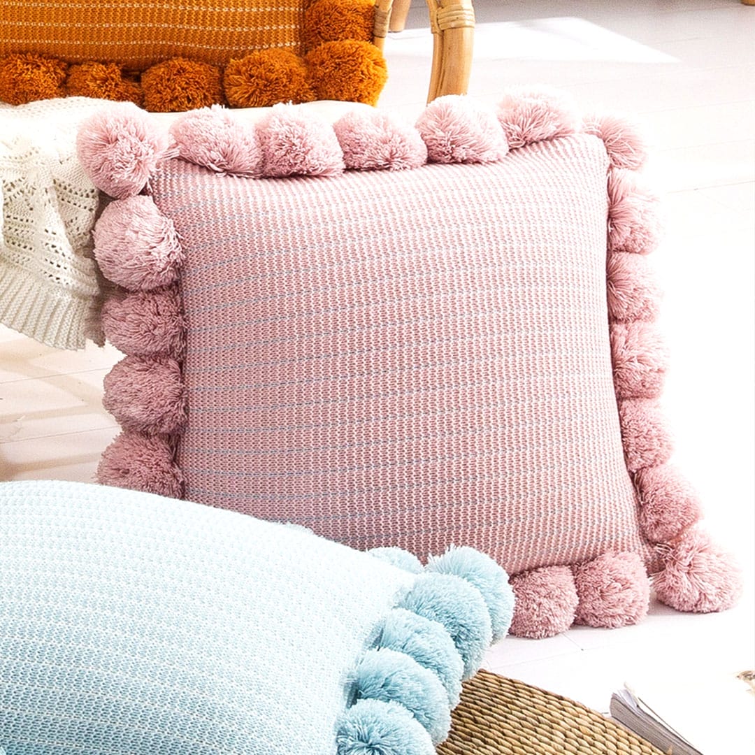 โ SOGA 2X 45cm Blush Pink Ribbed Pillow Cover with Pom Poms