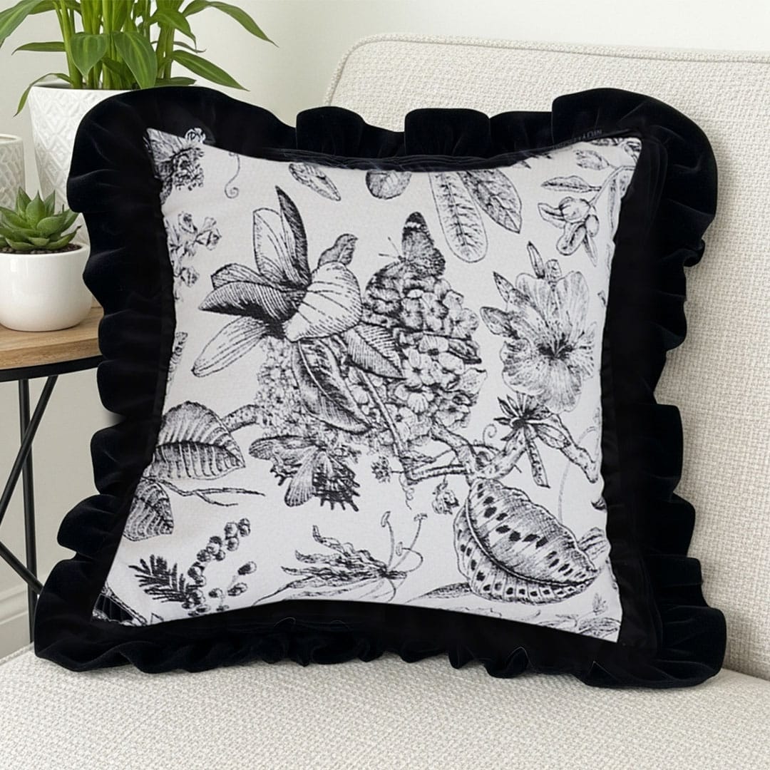โ SOGA 2X 45cm Chic Botanical Bliss Black & White Square Pillowcase