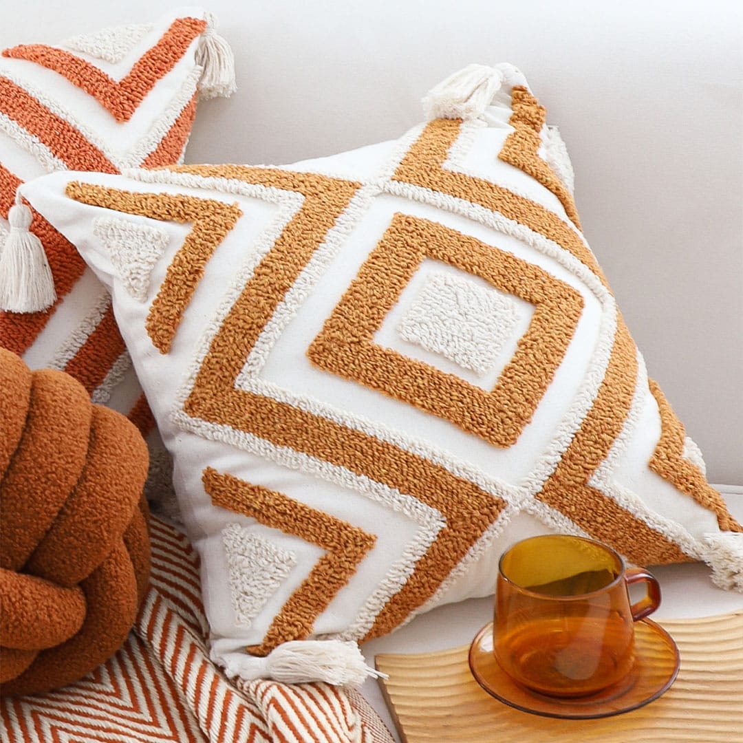 Elevate your decor with these sophisticated layered diamond pillowcases (pillow inserts not included). The intricate geometric design and rich hues add upscale texture and visual depth, making them perfect for creating a designer-inspired bedroom or living space.