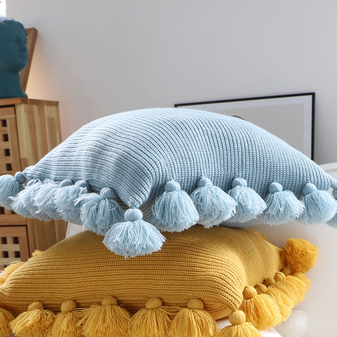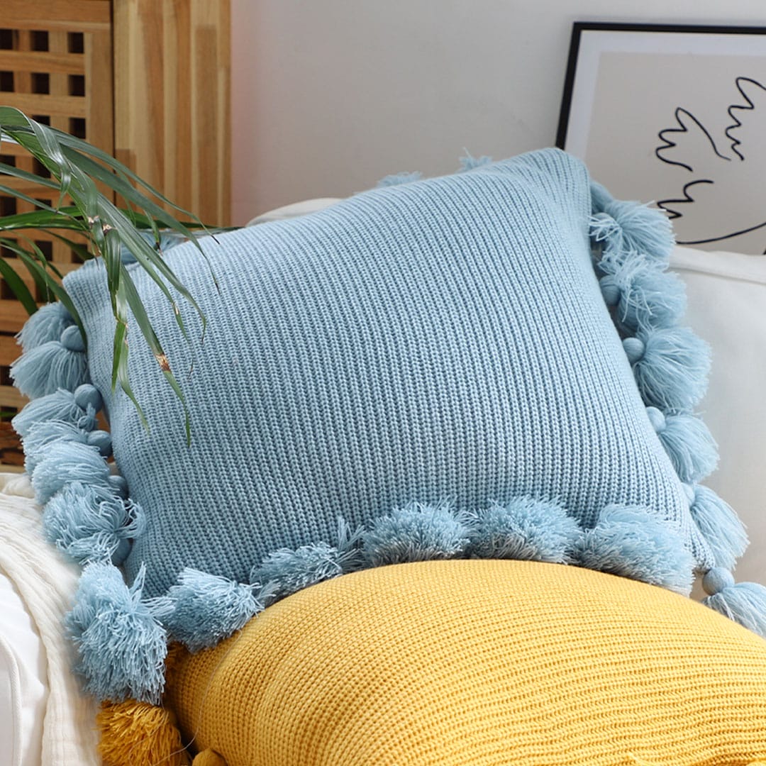โ SOGA 2X 45cm Textured Pillowcase with Pom-Pom Trim (Sky Blue)