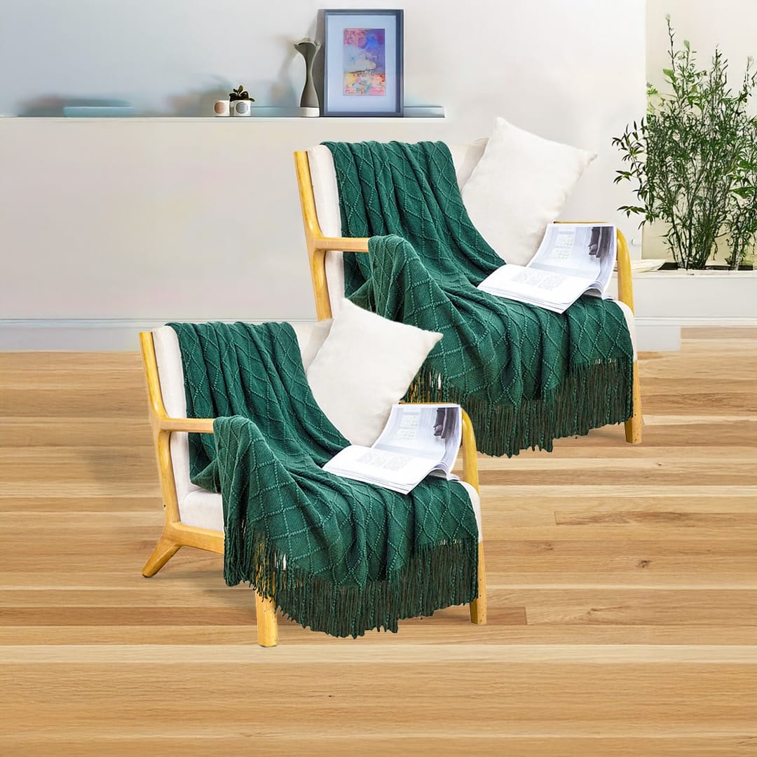 - 2X SOGA Green Diamond Pattern Knitted Throw Blanket