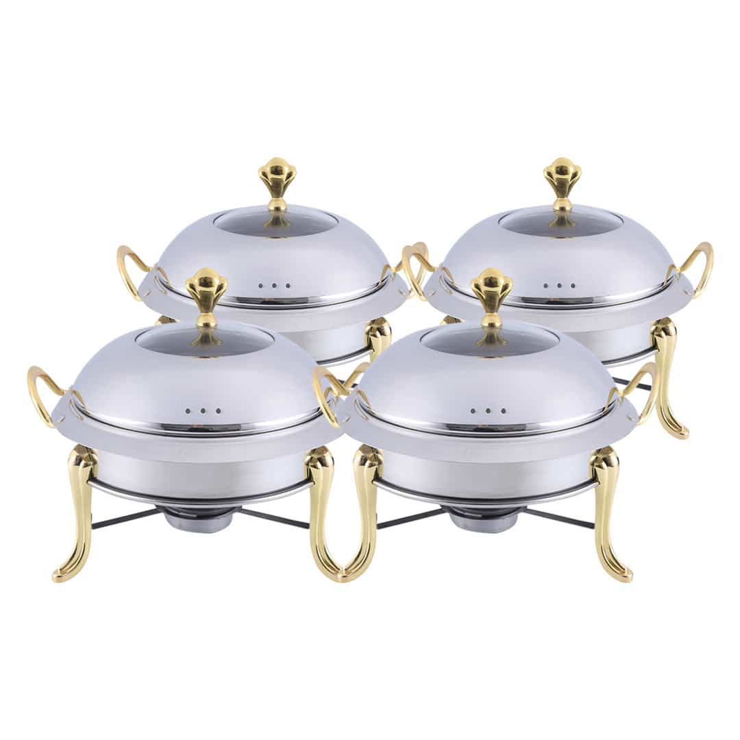 • 4 X SOGA Stainless steel gold accents chafing dish with glass top lid