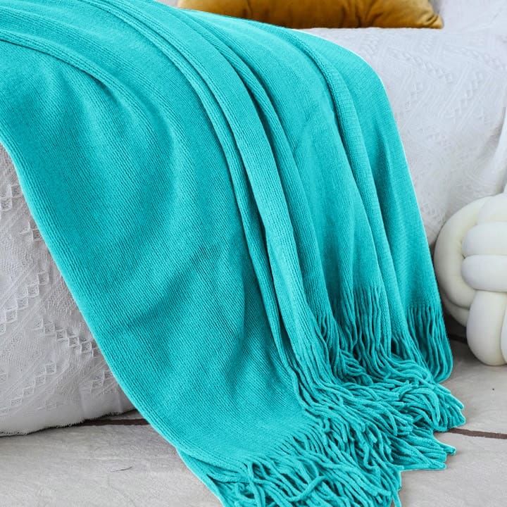 SOGA Teal Acrylic Knitted Throw Blanket